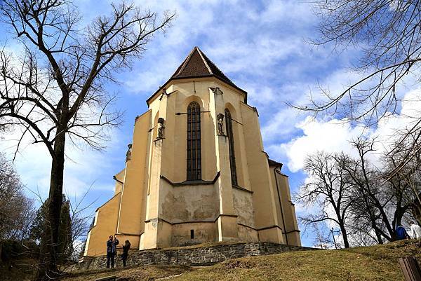往城裡的最高點走去,我想從高點眺望著這個小城,於是我爬上了一條長長的階梯通道,來到了Cetăţii Hill頂上的一座教堂,看似寧靜的照片後頭,是一群學生們的吵雜聲,據我跟管理員雞同鴨講的說法,應該是某個跟德國有關的學校吧,原本的沙發主人似乎就是在這裡當志工,而教堂裡頭沒有再硬加上根德古拉的關係,是一座可以追朔回13世紀,也被列入世界文化遺產的寧靜教堂。
